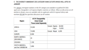 Below are the cut-off numbers in question, those that will apply in the DV 2026 Program during the month of January 2026:
